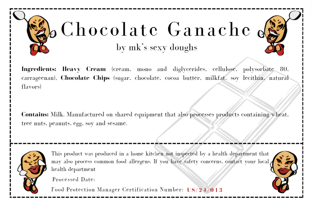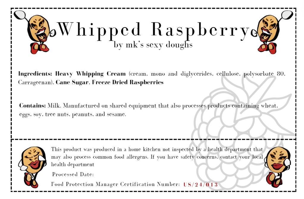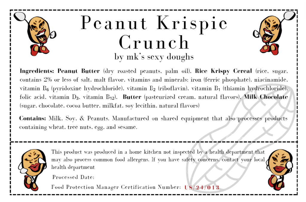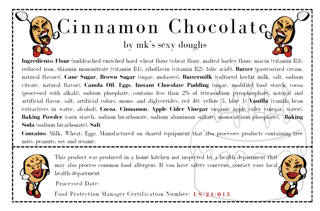 This product was produced in a home kitchen not inspected by a health department that may also process common food allergens. If you have safety concerns, contact your local health department.