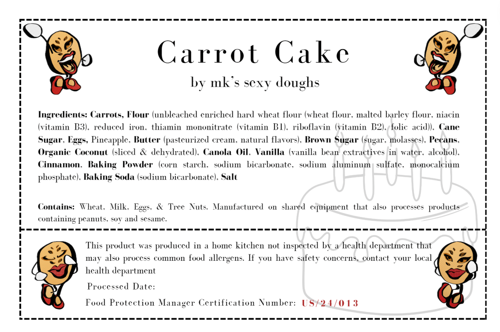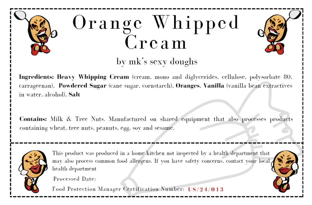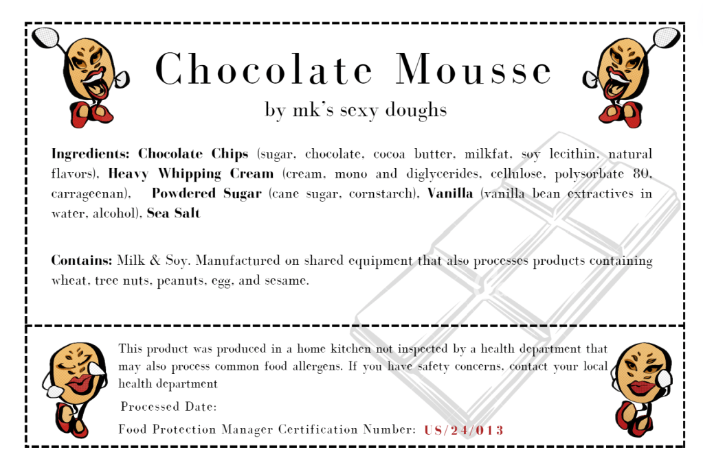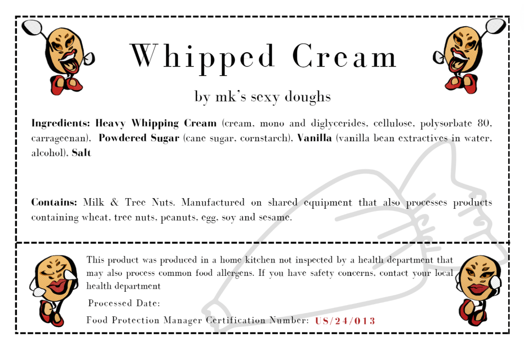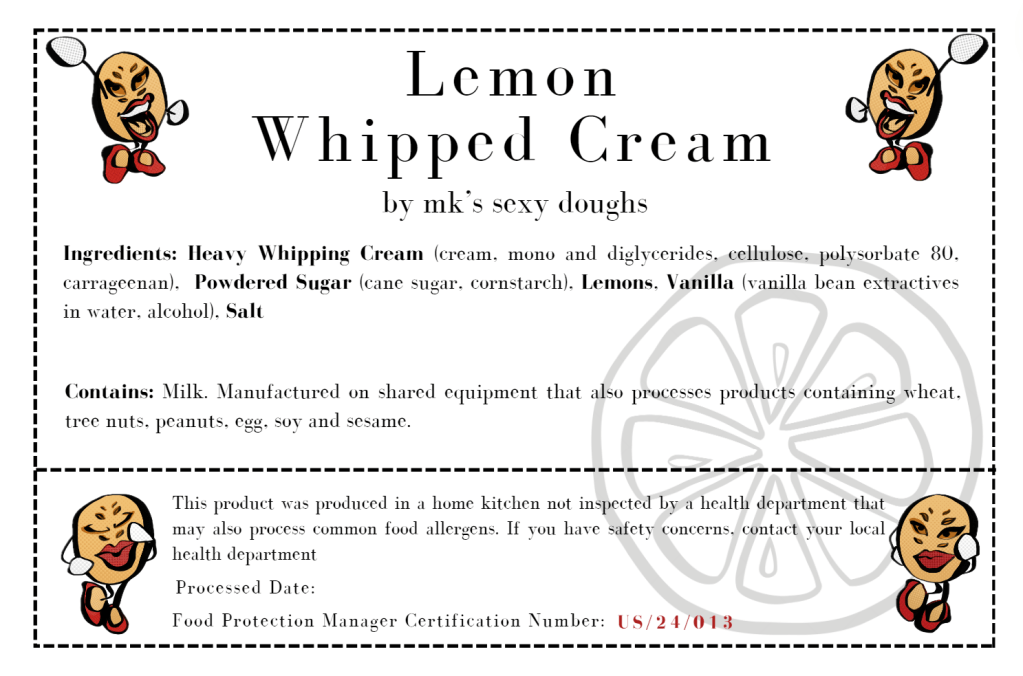This product was produced in a home kitchen not inspected by a health department that may also process common food allergens. If you have safety concerns, contact your local health department.