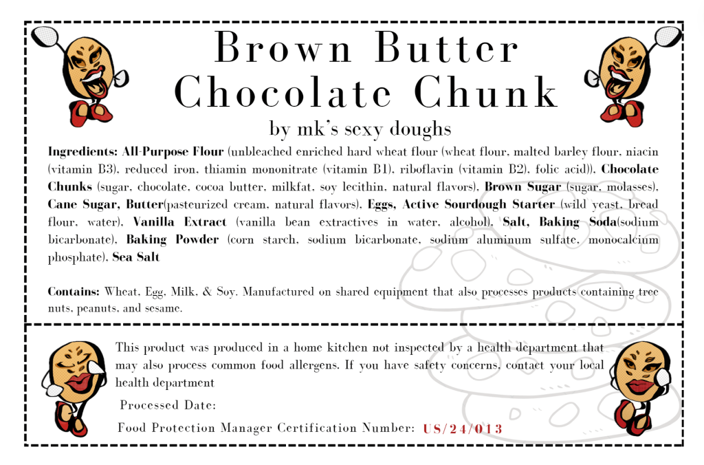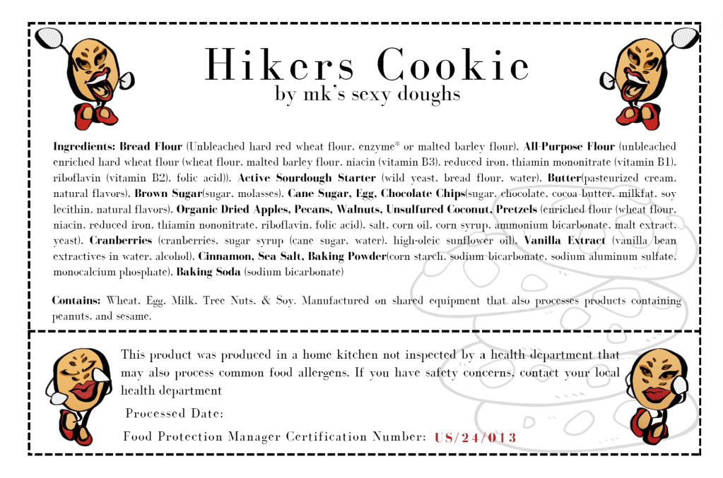 This product was produced in a home kitchen not inspected by a health department that may also process common food allergens. If you have safety concerns, contact your local health department.
