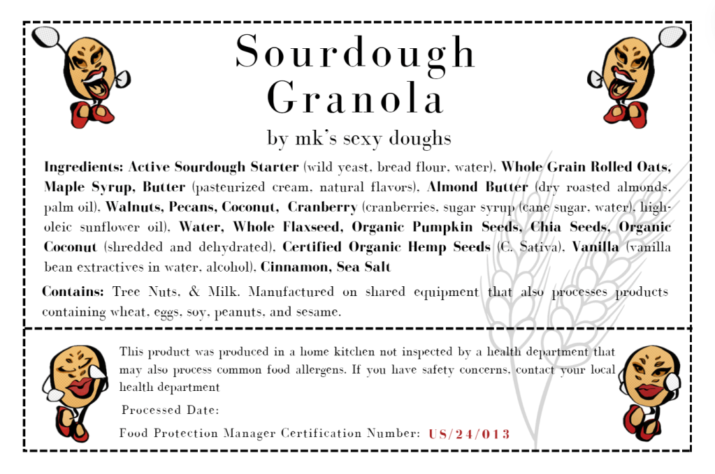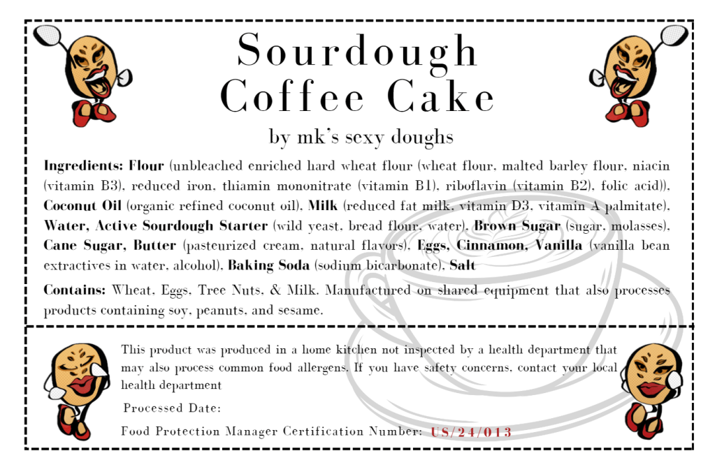 This product was produced in a home kitchen not inspected by a health department that may also process common food allergens. If you have safety concerns, contact your local health department.